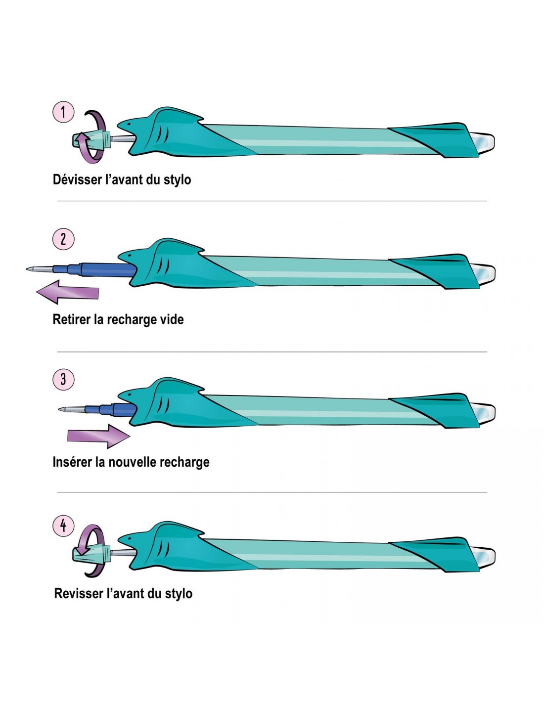 - ASTUCES D’UTILISATION : Dévisser l’embout pour recharger le stylo animaux, utiliser la gomme intégrée pour effacer. Le système rotatif permet de se passer de bouchon, pour éviter les capuchon perdus